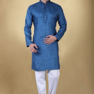 Royal Blue Kurta with Off White cotton pajama