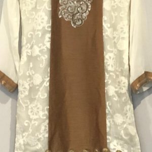 Golden and Cream Georgette Partywear Suit