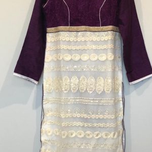 Off White and Purple Georgette Partywear Suit