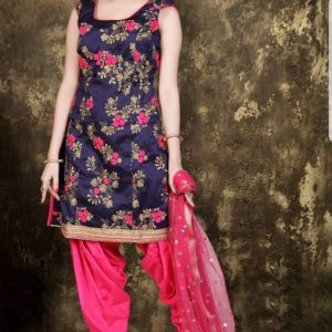 NAVY BLUE AND PINK PATIALA SALWAR SUIT