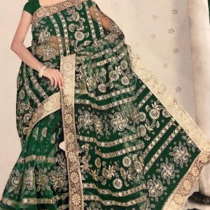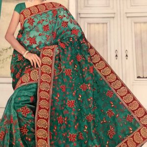 CORAL PINK & MINT GREEN DESIGNER WEAR SAREE