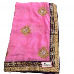 KAND EMBROIDERED ORANGE PINK HEAVY SAREE